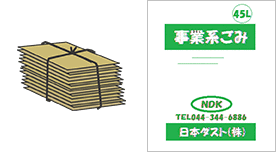 | ダンボール | 10枚~15枚程度で束ねて縛って 緑色日本ダスト(株)の指定袋を貼る ![]() |